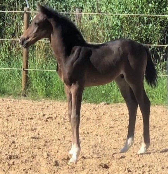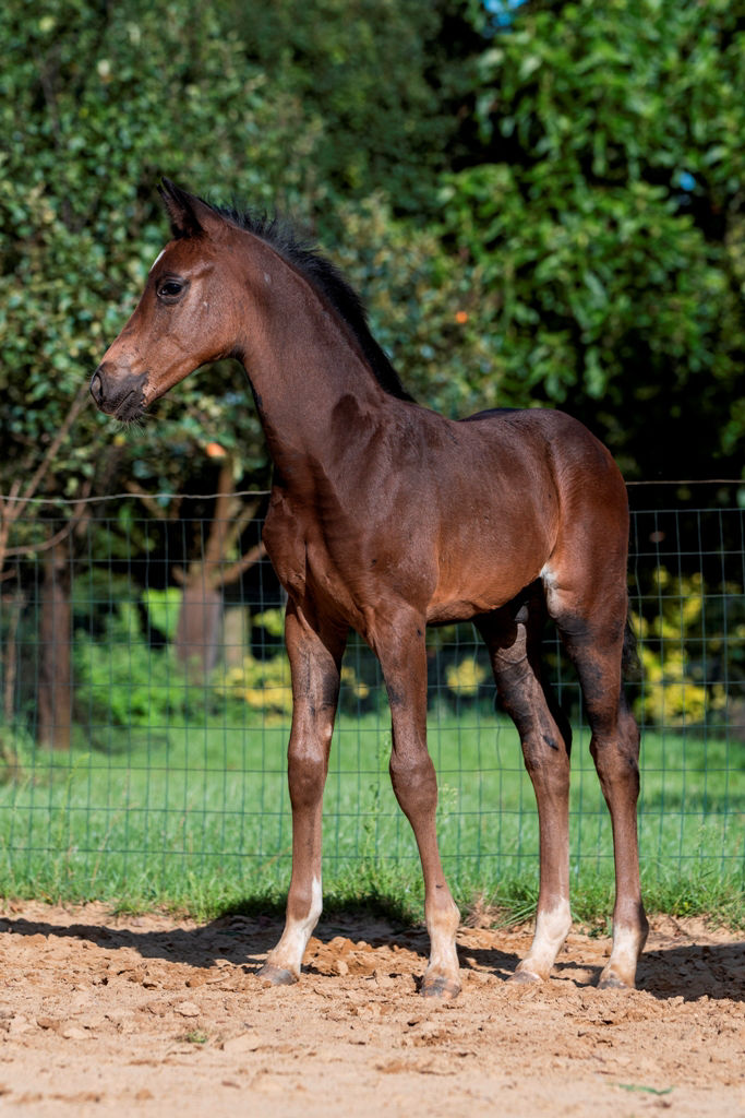 Donkerbruin hengstveulen geboren op 25 juni 2020, Afstammeling van For Ferrero (zie vader Phara van de Palshoeve) uit Fenna.
