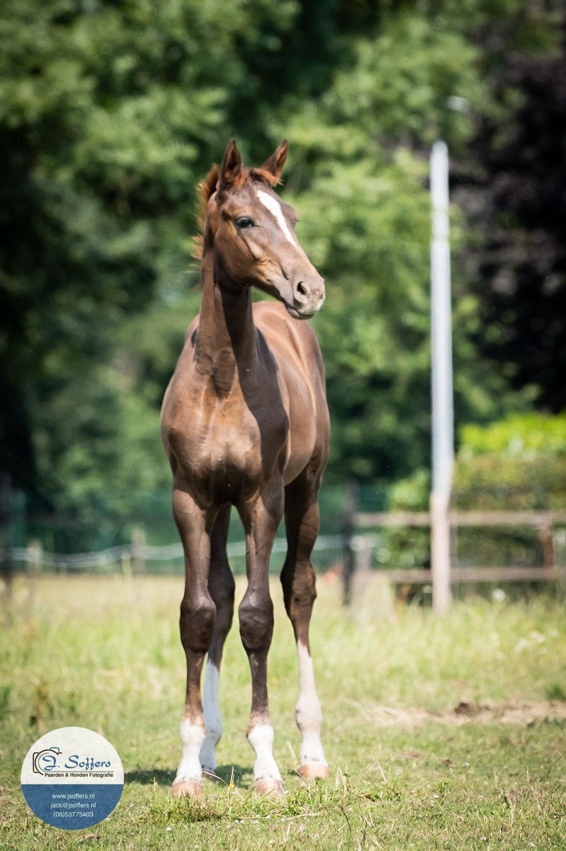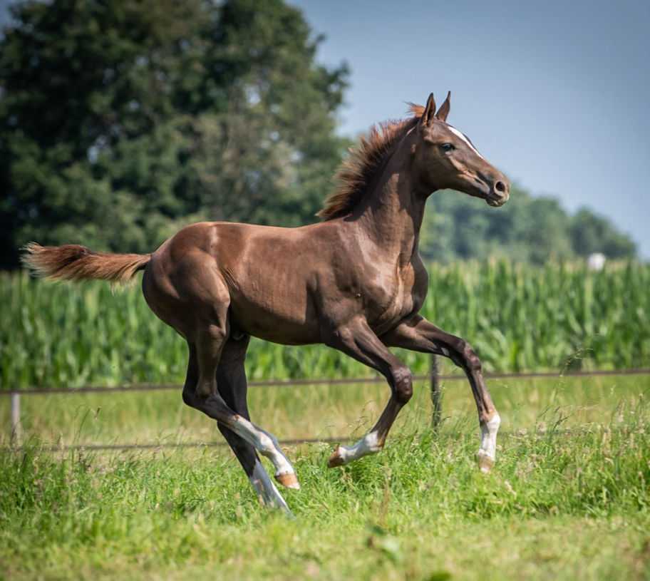 Donkere vosmerrie geboren op 4 april 2021, Afstammeling van Revolution ( Rocky Lee x Rouletto) uit onze Graphic D.C.