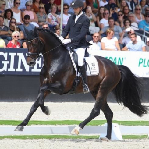 Revolution: “een rockster. Een bewegingskunstenaar”, luidde het overweldigende jurycommentaar over Revolution’s prestatie in de finale van de wereldkampioenschappen voor 5-jarige dressuurpaarden. “voor de ruime en krachtige draf 9,8, voor de tactmatige, ruim overtredende en relaxte stap 9,0, voor de uitgebalanceerde, duidelijk bergopwaartse galoppade 10,0, voor de werkwilligheid 9,3 en voor het toekomstperspectief van deze krachtpatser 10,0.”